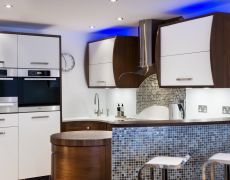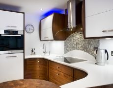 Installation was very efficient – just two weeks. We had access to our new house before we had completed on it, so the kitchen was ready for us to move into. I found the service very professional, yet easy and informal. They are used to understanding clients’ needs, and just how important a new kitchen installation is to a home.I am particularly thrilled with the Glacier White Corian worktop with its Quooker hot tap, which is designed on a curve with a breakfast bar area. It’s great for entertaining and everyday use.